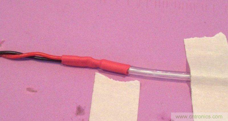 請注意,每根線都是熱收縮的,這有助于固定發(fā)絲,并且可將內(nèi)芯連接頭與發(fā)絲連接頭很好地隔離開來。我使用加熱槍比較便宜,但總是好過火柴或打火機的。