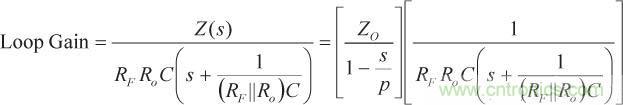 等式6中的環(huán)路增益非常明顯,可通過以下等式求得