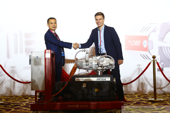 普發(fā)真空中國(guó)區(qū)總經(jīng)理鄭洪(左)和全球工業(yè)市場(chǎng)經(jīng)理 Florian Schneider(右)為新產(chǎn)品揭幕