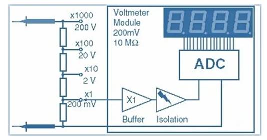 輸入衰減器和功能選擇開關(guān)構(gòu)成數(shù)字萬用表輸入。衰減器有時(shí)是自動(dòng)化的,并與自動(dòng)量程功能相結(jié)合。轉(zhuǎn)換器和數(shù)字讀數(shù)并不總是足夠靈敏,無法用于萬用表,因此通常會(huì)提供放大器。它還起到在轉(zhuǎn)換器和衰減器之間提供隔離的額外作用,防止被測電路可能出現(xiàn)負(fù)載。