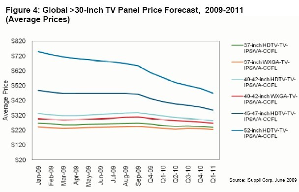 隨著40/42英寸及更大尺寸面板價(jià)格的不斷上升,供應(yīng)商希望能夠回到現(xiàn)金成本甚至總成本的水平。6月份46/47英寸面板的價(jià)格也有望回彈。中國新推出的城市刺激項(xiàng)目將進(jìn)一步推動(dòng)市場對(duì)大屏幕電視的需求。