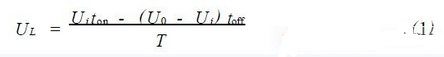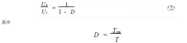 其中,UL為電感兩端電壓在一個開關(guān)周期內(nèi)的平均值;U0為輸出電壓;Ui為輸入電壓;T為開關(guān)周期;ton為Q3處于通態(tài)的時間;toff為Q3處于斷態(tài)的時間。令UL=0,在電感電流連續(xù)的工作過程中有: