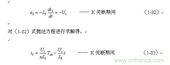 (1-83)式中右邊的第一項就是流過變壓器初級線圈N1繞組中的最大勵磁電流被折算到次級線圈N3繞組中的電流(最大值),第二項是i3中隨著時間變化的分量。其中n為變壓器次級線圈N3與初級線圈N1的變壓比,或匝數(shù)比。