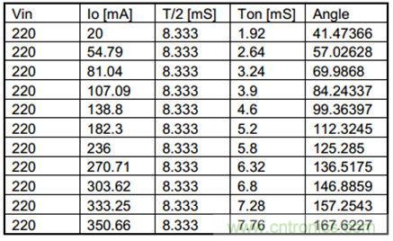 表2:不同亮度調(diào)節(jié)器導(dǎo)通角的輸出電流