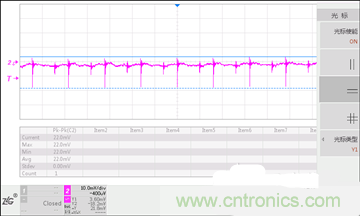 周立功致遠電子研發(fā)生產(chǎn)的E_URBD-6W系列模塊電源設(shè)計時,考慮的電容以及變壓器的布局,有效的減小了電源模塊輸出紋波噪聲。下圖是典型型號E2405URBD-6W的輸出紋波噪聲。