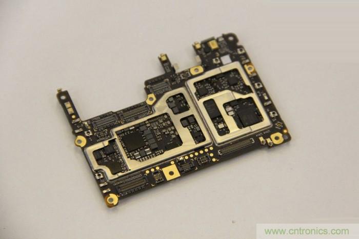 可以看到,堅果R1的芯片部分集成度非常高,我們熟知的驍龍845處理器,內存部分,都在這個區(qū)域。
