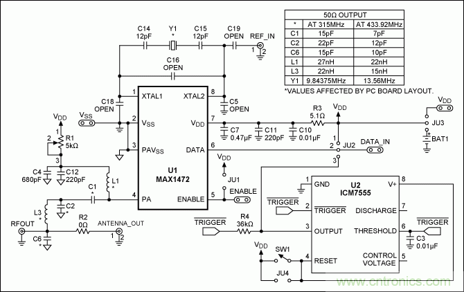 MAX1472發(fā)射功率+10dBm,3.3V供電