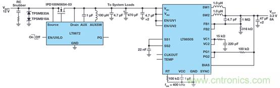 典型的Silent Switcher應(yīng)用原理圖及其在PCB上的外觀
