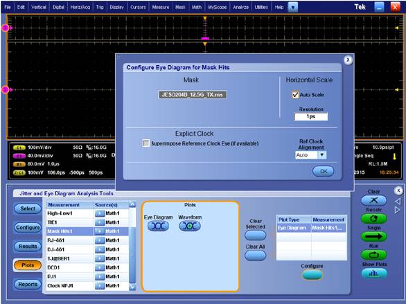 JESD204B也有成熟的測量方案,基于DPOJET一鍵完成包括最重要的眼圖模板測試在內的所有測量項。
