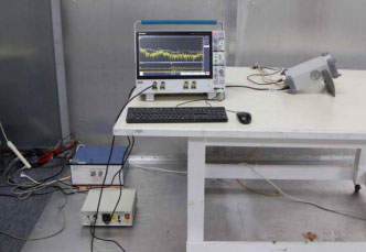 一旦產(chǎn)品的諧波特性完全表征,就該看看哪些諧波實(shí)際上會(huì)輻射。為此,我們可以使用連接到距產(chǎn)品或待測(cè)系統(tǒng)至少1m遠(yuǎn)的未校準(zhǔn)天線的4/5/6系混合示波器測(cè)量實(shí)際的輻射(圖4)。通常,這些輻射是來(lái)自連接的I/O或電源電纜以及屏蔽外殼的接縫或孔隙。將這些數(shù)據(jù)與近場(chǎng)和電流探頭的數(shù)據(jù)進(jìn)行比較。實(shí)際測(cè)量的輻射應(yīng)該能夠表明先前探測(cè)所確定的能量來(lái)源。