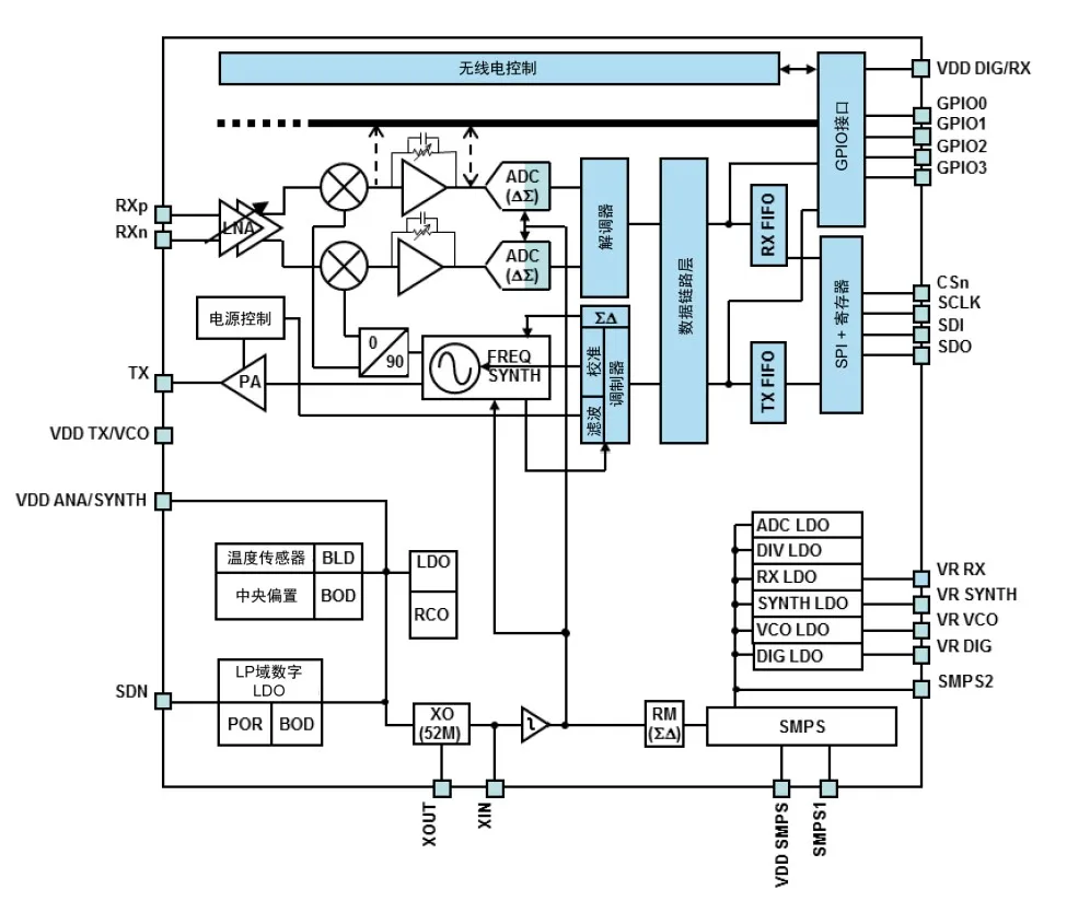 圖2:SX126X系統(tǒng)框圖(圖源:Semtech)