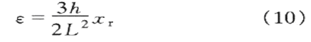 在圖1中懸臂梁相當(dāng)于振動(dòng)力學(xué)模型中的彈簧,其長(zhǎng)為L(zhǎng),寬為b,厚為h.光纖光柵粘貼在懸臂梁的上表面,并粘貼在固定端附近,這樣有利于提高應(yīng)變靈敏度.質(zhì)量塊受到振動(dòng)時(shí),在慣性力的作用下懸臂梁自由端產(chǎn)生的撓度為xr,由此引起固定端附近的光纖光柵應(yīng)變?yōu)椋?
