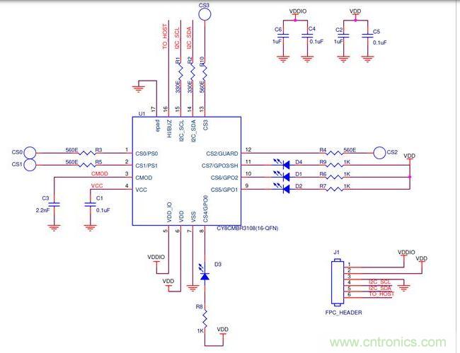 一項好的電容式感應(yīng)系統(tǒng)原理圖設(shè)計中必須包含MBR器件設(shè)計指南中所推薦的適當數(shù)值的所有無源組件。