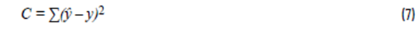 優(yōu)化成本函數(shù)由公式7給出。這是最小二乘成本函數(shù),其中?是實(shí)測(cè)數(shù)據(jù)點(diǎn)的向量,y是公式6的輸出。